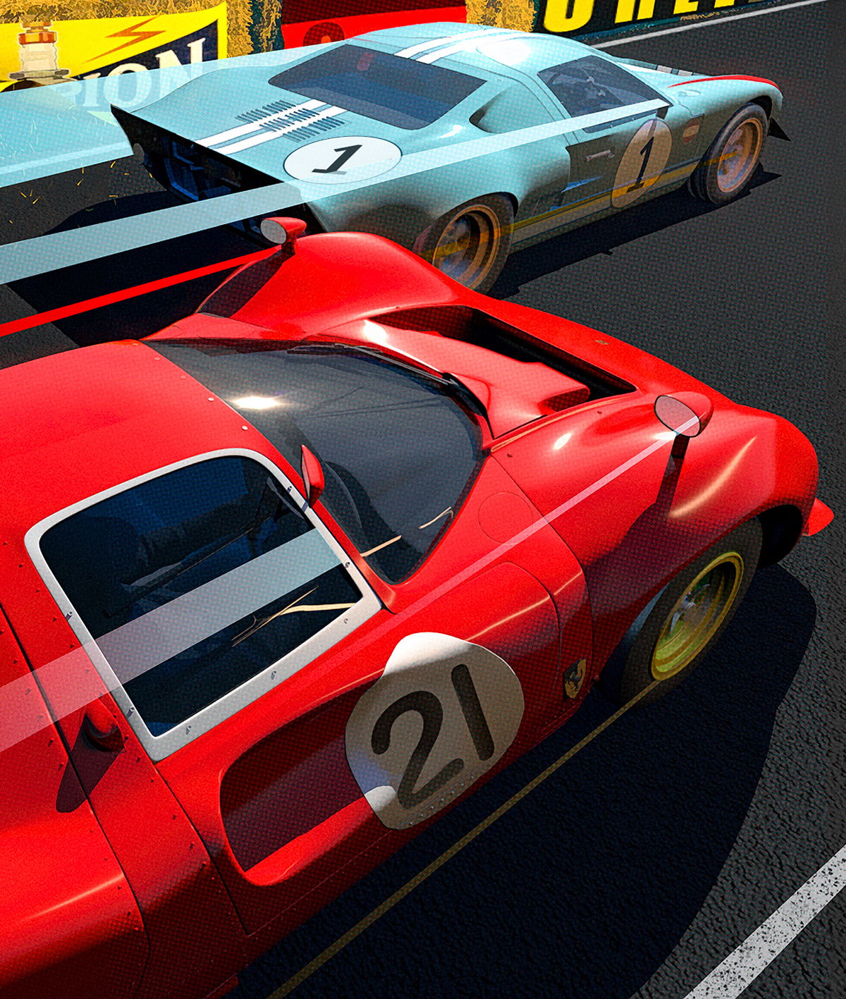 Illustration for the New Yorker about the film Ford vs Ferrari.