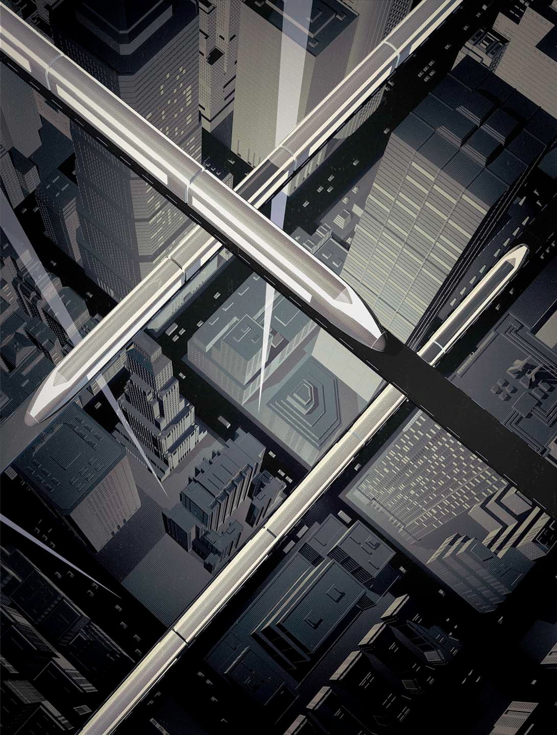 Set of Illustrations for Omega Watches customer magazine, about the future of transportation.